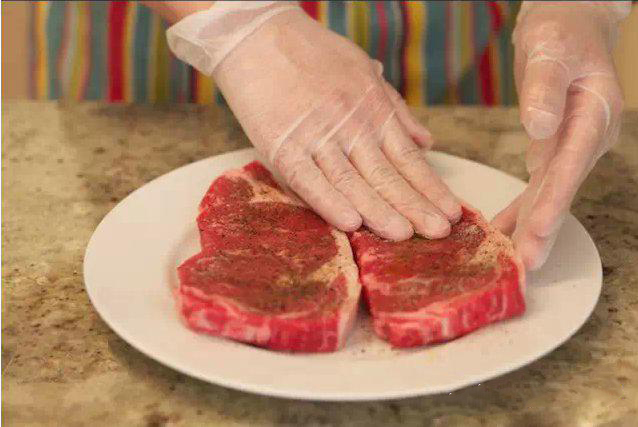 如果您所购买的是已调理好的牛排, 那可以直接跳过腌制的部分, 因为嫩化及入味的过程厂家已经帮您完成了. 如果您所购买的是高价格的上等牛肉, 建议稍作腌制即可, 尽量保持牛排的”原汁原味”. 腌制的过程如下: 1. 使用海盐均匀的 (同时也大量的) 铺满牛排的正反两面, 2. 用黑胡椒以同样的方式铺满牛排两面, 3. 倒入大量的橄榄油, 让牛排充分吸收, 直至肉排吸不进油为止 (煎牛排不再放入任何油).