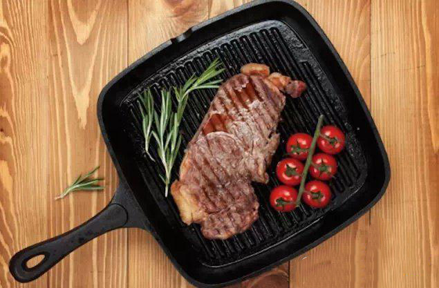 煎制牛排可使用平底锅及底部带有条纹的锅, 主要看个人的偏好. 不过对于专业的美食家们, 条纹锅除了更容易传递热能, 还能在牛肉上留下诱人的烙印.